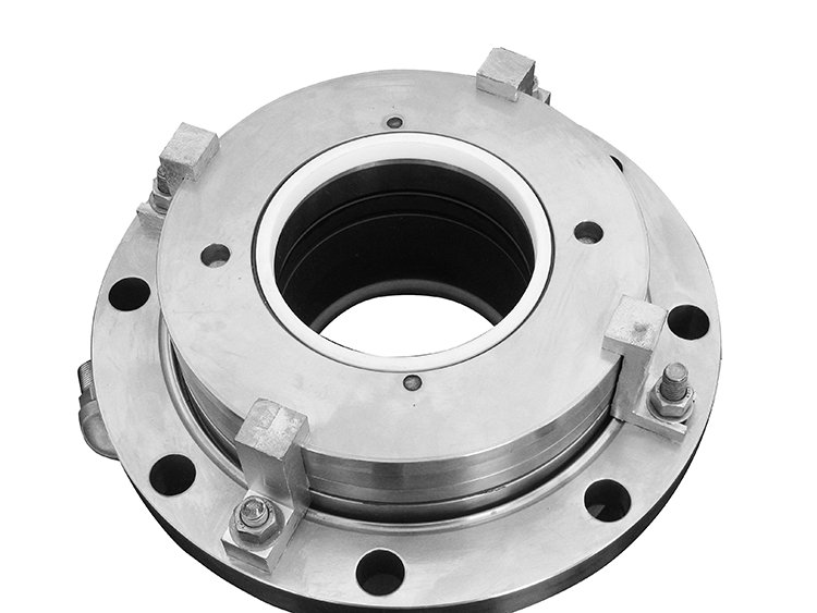 特點:雙端面機械密封有兩道端面密封,若密封失效,二級密封仍然可密封,防止泄露。一般雙端面密封都需要外供密封液系統,向密封腔內引入封液進行堵封、潤滑和冷卻,且多為循環冷卻使用。密封液不僅可以沖洗摩擦副改善機械密封工作環境,還可以作為密封面是否失效的重要檢測手段。